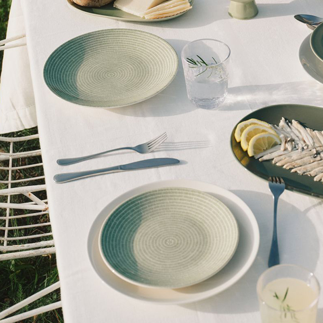1996年に誕生した「24h」シリーズは、今年で30周年を迎えました。その節目を祝し、人気の「24h アベック」からは、2003年発売当時のオリジナルカラーである「グリーン」が待望の復刻を果たしました。どこか和の雰囲気を感じさせる繊細な総柄と、落ち着いたトーンのグリーンは、春の瑞々しい食卓にも美しく映えます。使い勝手の良い20cmと26cmのプレートを、オンラインショップ限定でご用意。和洋を問わず日々の料理を引き立てる、タイムレスな名作をお楽しみください。