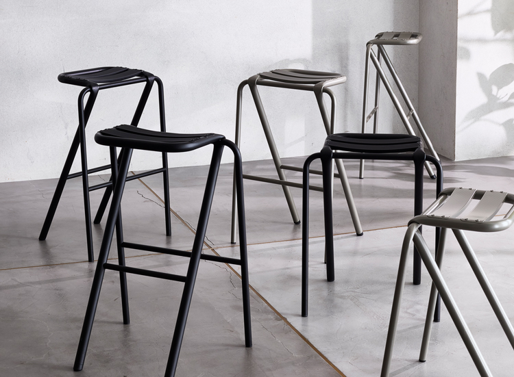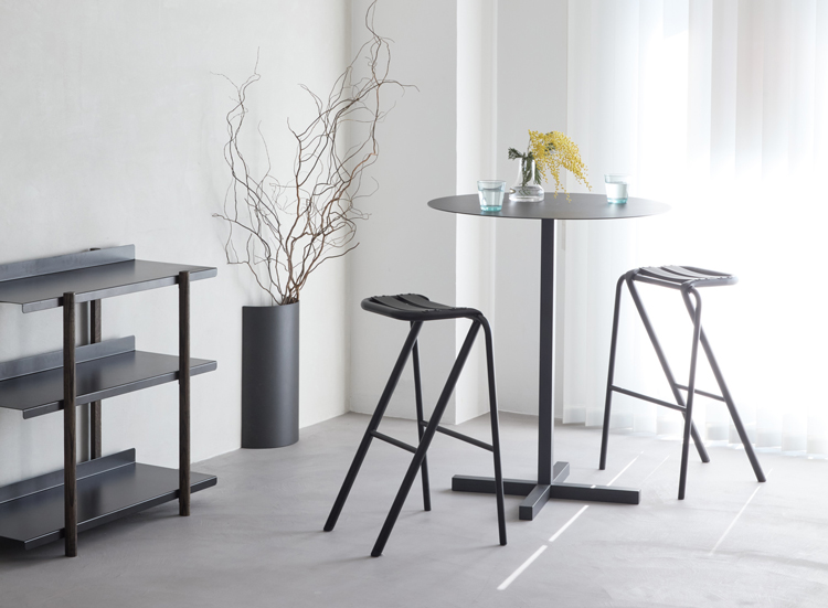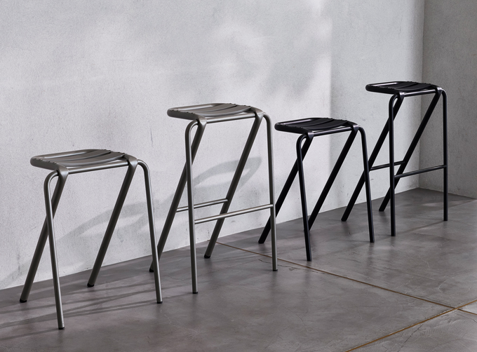 2017年度グッドデザイン賞を受賞した唯一無二の斬新で美しいデザイン。頑丈に組んだフレームのスチール素材は強度に優れ、座面はアルミニウムを湾曲させることで座り心地のよさを体現。軽量かつ丈夫なスツールは室内での持ち運びもしやすいうえ、使用しないときには、スタッキングも可能です。
