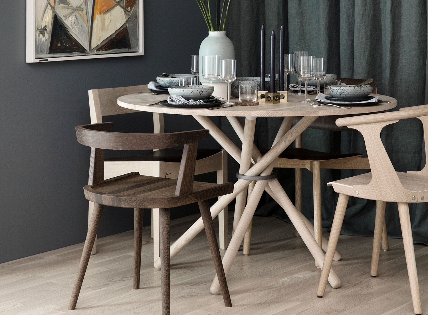 EBERHART(エバーハート)は、2014年に建築家のルーン・ヴィジル・ニールセンとエンジニアのエスベン・クリストファーセンという、ユニークな経歴を持つ二人によって立ち上げられた家具ブランドです。彼らの掲げる「一時的に流通するものではなく、未来に残る商品を作る」という哲学は、ブランドを象徴する独自のパーツ「アッセンブリー・リング」に集約されています。このリングによって、工具を一切使わずにテーブルの脚などを簡単に組み立て・分解することが可能。これにより、ライフステージの変化に合わせたパーツの交換や移動を容易にし、一つの家具を世代を超えて使い続けることを現実のものとしました。デンマークの伝統的なクラフトマンシップに敬意を払いながら、コンクリート、スチール、オーク材といった異なる質感を大胆に組み合わせるモダンなデザイン。そして、未来を見据えたサステナブルな視点。EBERHARTは、デザイン、機能、思想のすべてにおいて「永く愛されること」を追求し、質の高い家具を生み出し続けています。