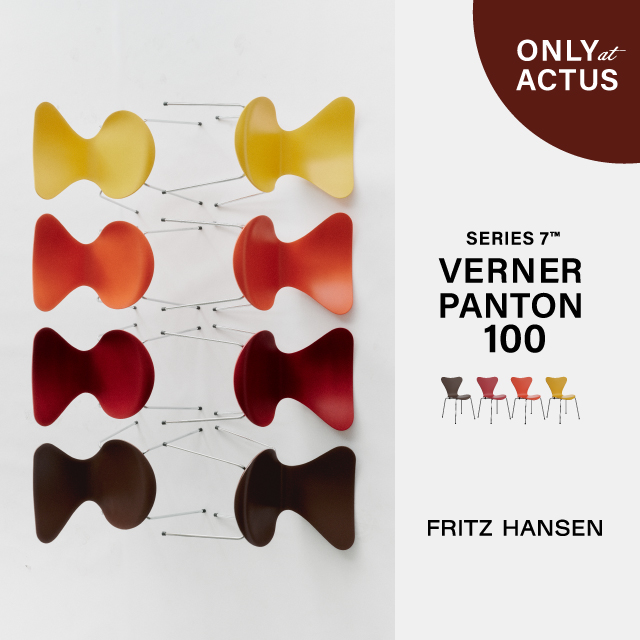 ヴァーナー・パントン生誕100周年を記念し、特別仕様の「セブンチェア ヴァーナー・パントン100」が登場しました。かつて1970年代にパントンが手掛けたセブンチェアの当時のカラーパレットをアーカイブから忠実に再現し、この度全4色がラインナップ。ヤコブセンのもとで働いた経験をもつパントンが、師の傑作に独自の色彩哲学を融合させた逸品です。50年以上の時を経て復刻した温かみある色彩が、二人の巨匠によるイノベーションのレガシーを讃えます。国内の正規販売店ではアクタスのみでのお取り扱いとなる、大変貴重なモデルです。ぜひお見逃しなく。