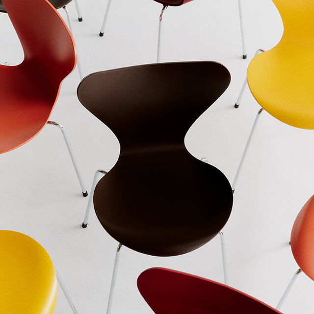 アリンコチェアは、1952年にアルネ・ヤコブセンによりデザインされた楽器のような曲線を持つ繊細で芸術的な外観のチェア。9層(デコ・シルエットは8層)で構成される成形合板のシェルは、そのエレガントなフォルムに驚くほどの強度と快適さを備えています。