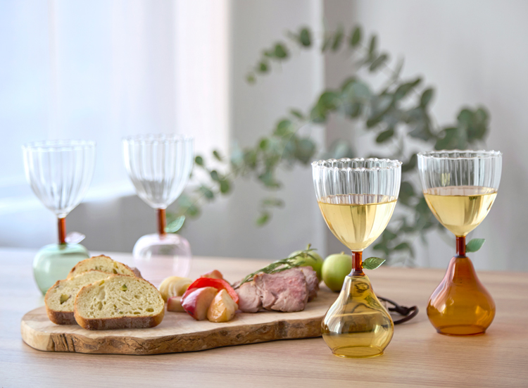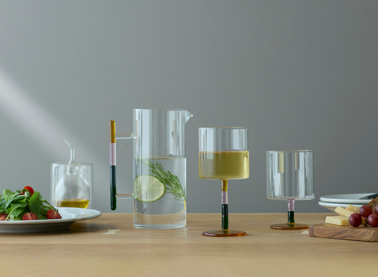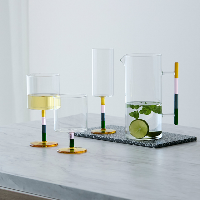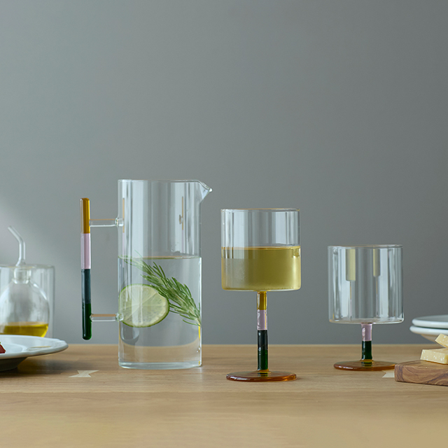 日々の食卓から特別な日の演出にもぴったりなグラスウェア。ウォーターグラスやワイングラス、ピッチャーなど華やかなアイテムを取り揃えました。使わないときには、どれもオブジェとして飾っておきたくなる、心弾むデザインです。
