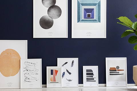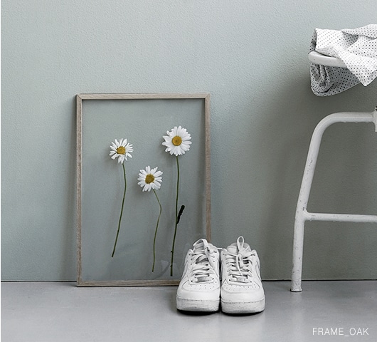 写真や絵、ポストカード、テキスタイルなど額に収められた主役を引き立たせます。