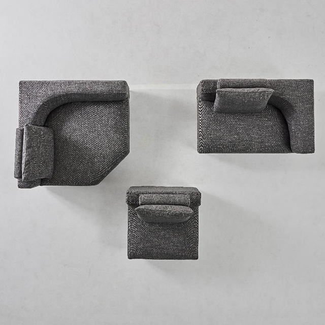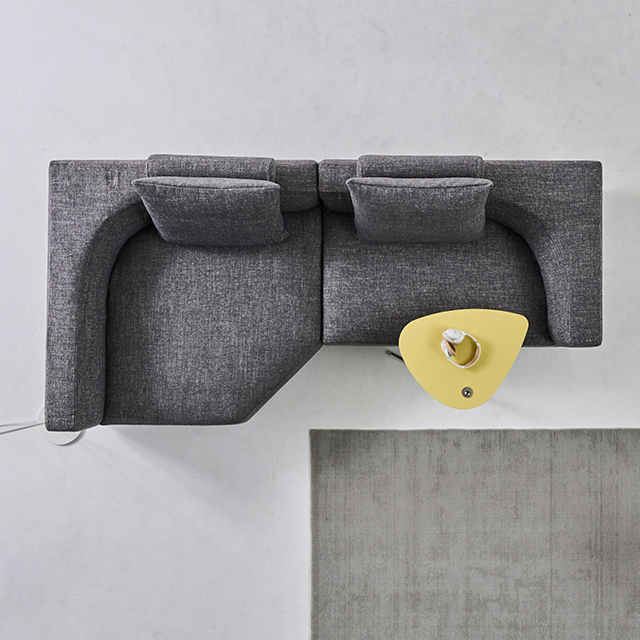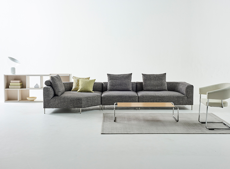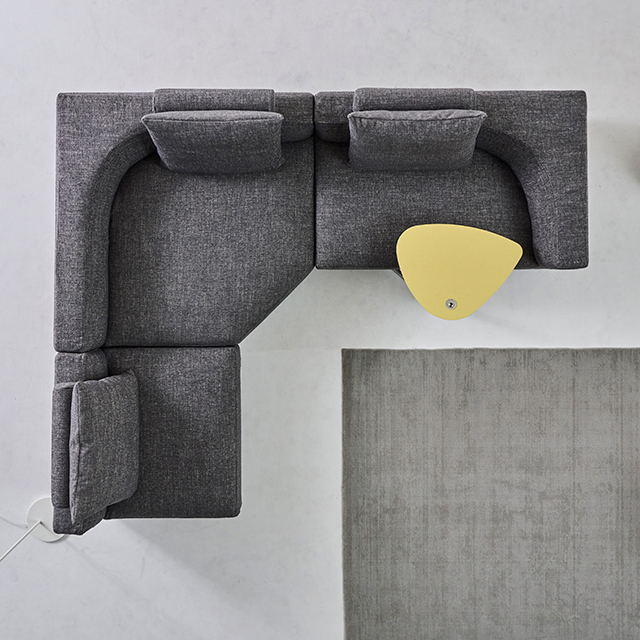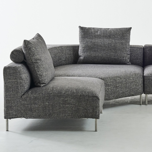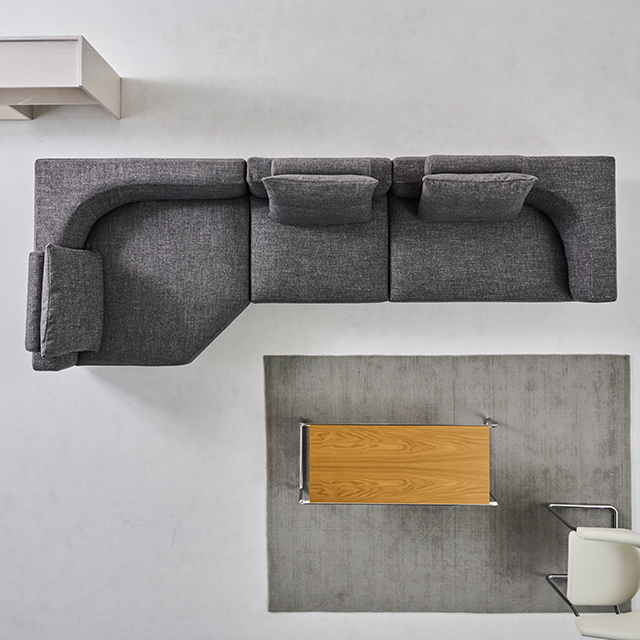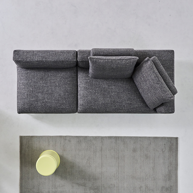 「ワンアーム」「ビッグコーナー」「ノーアーム」の3種類の形状のユニットを、リビングの広さや形に合わせて自由に組み合わせられます。お引越しやライフスタイルが変わった時には、配置を変更することも可能です。抜け感のある片アームソファ、扇状に組み合わせたラウンジソファなど、暮らしに合う形状がきっと見つかります。アイテムはそれぞれ単品使いができて、一人暮らしのファーストソファとしてもおすすめです。各ユニットは大人二人で持ち運べる軽さですので、模様替えや引越しする際も便利です。