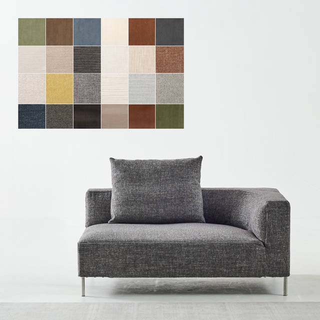 PARCソファの張地の種類が増え、素材感の異なる7種類、全24色の中から、スタイルに合わせてお好きなカラーをお選びいただけるようになりました。各商品ページの「張地」からご選択ください。