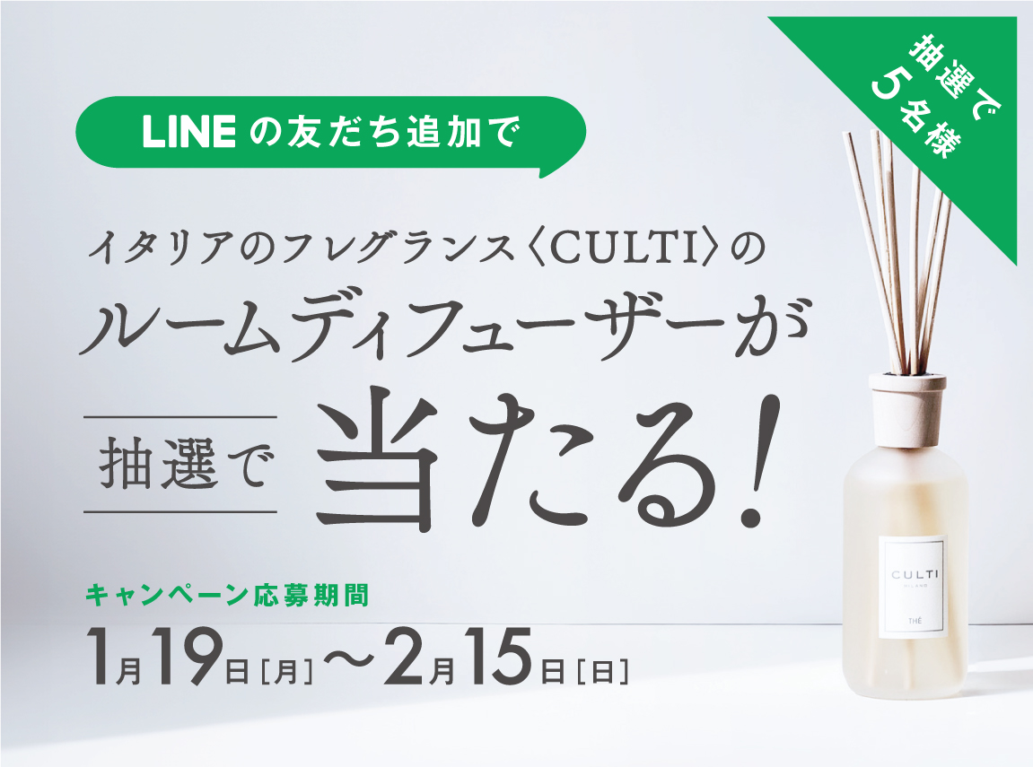 \5名様に当たる/ LINE友だち追加でCULTIルームディフューザーをプレゼント!