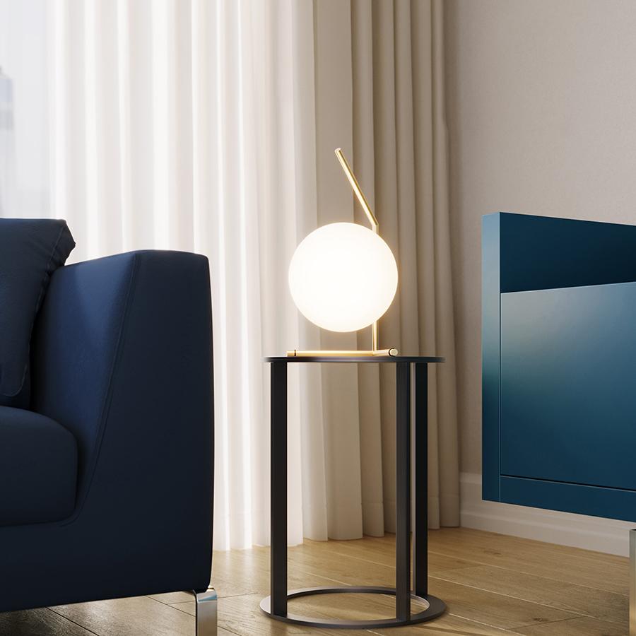 マイケル・アナスタシアデスがデザインしたIC LIGHT。ガラスの球体と細く傾いた棒が絶妙なバランスで組み合わせられたデザインです。