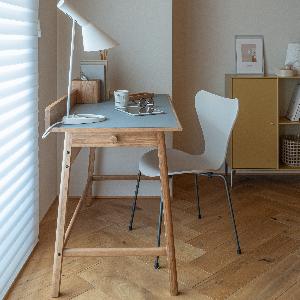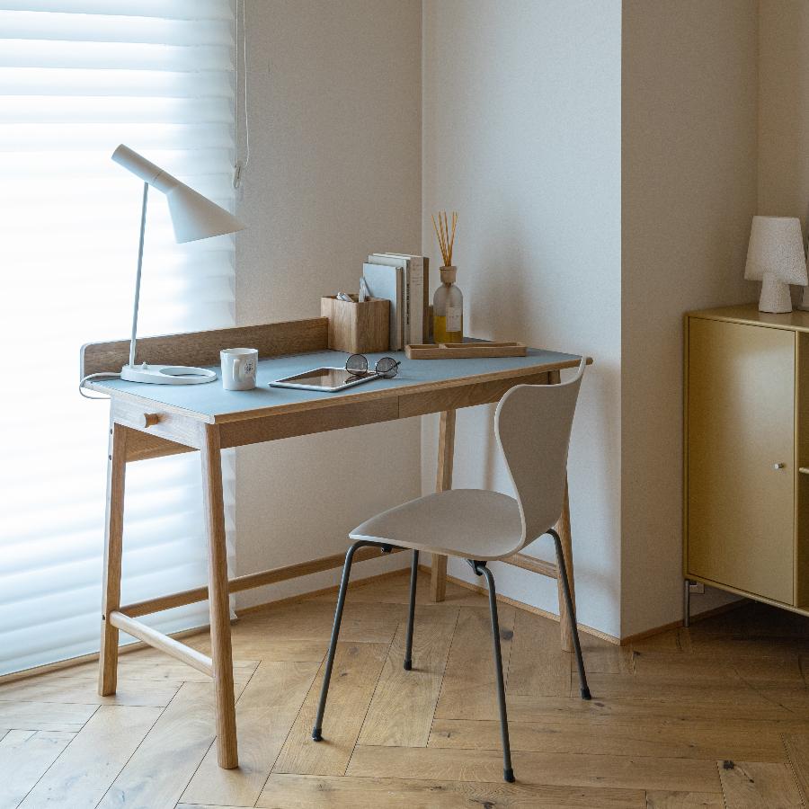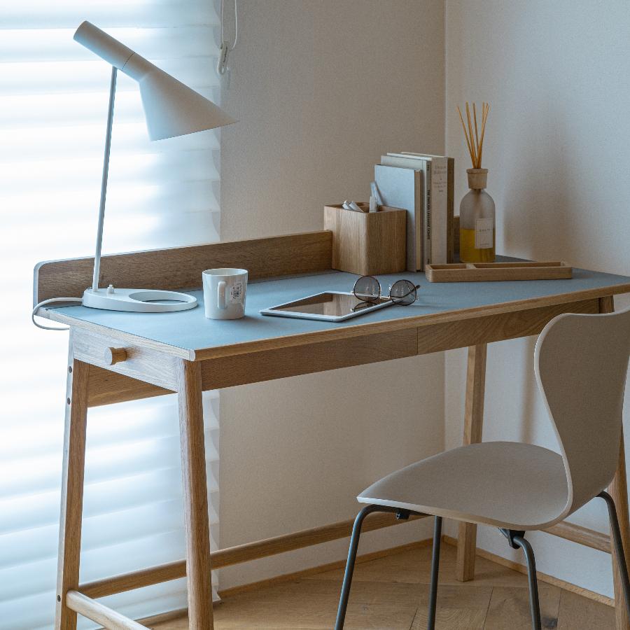 デスクフレームのオーク材と相性がよく、幅広いテイストのインテリアと馴染みがよいカラーです。