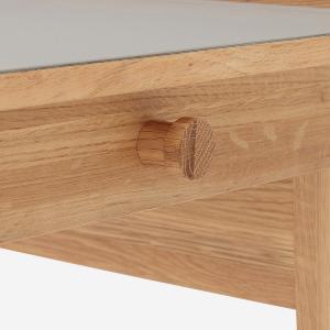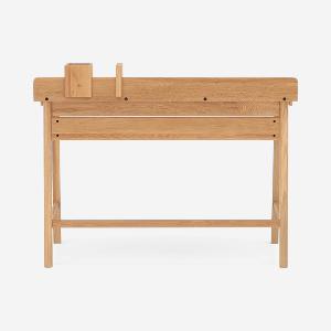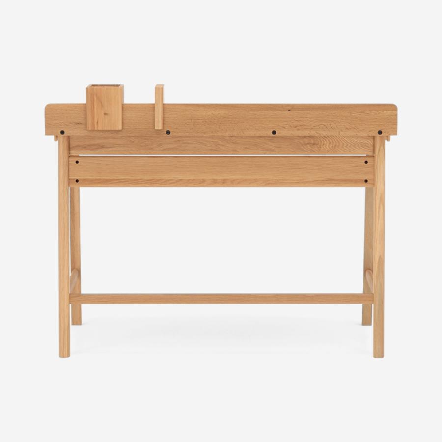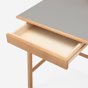 引き出しはデスク天板のフロントラインより少し後ろにセットされているので、デスク全体がすっきりとした印象に見えます。このような細かなディテールの積み重ねが、子どもから大人まで長く使い続けられるポイントです。