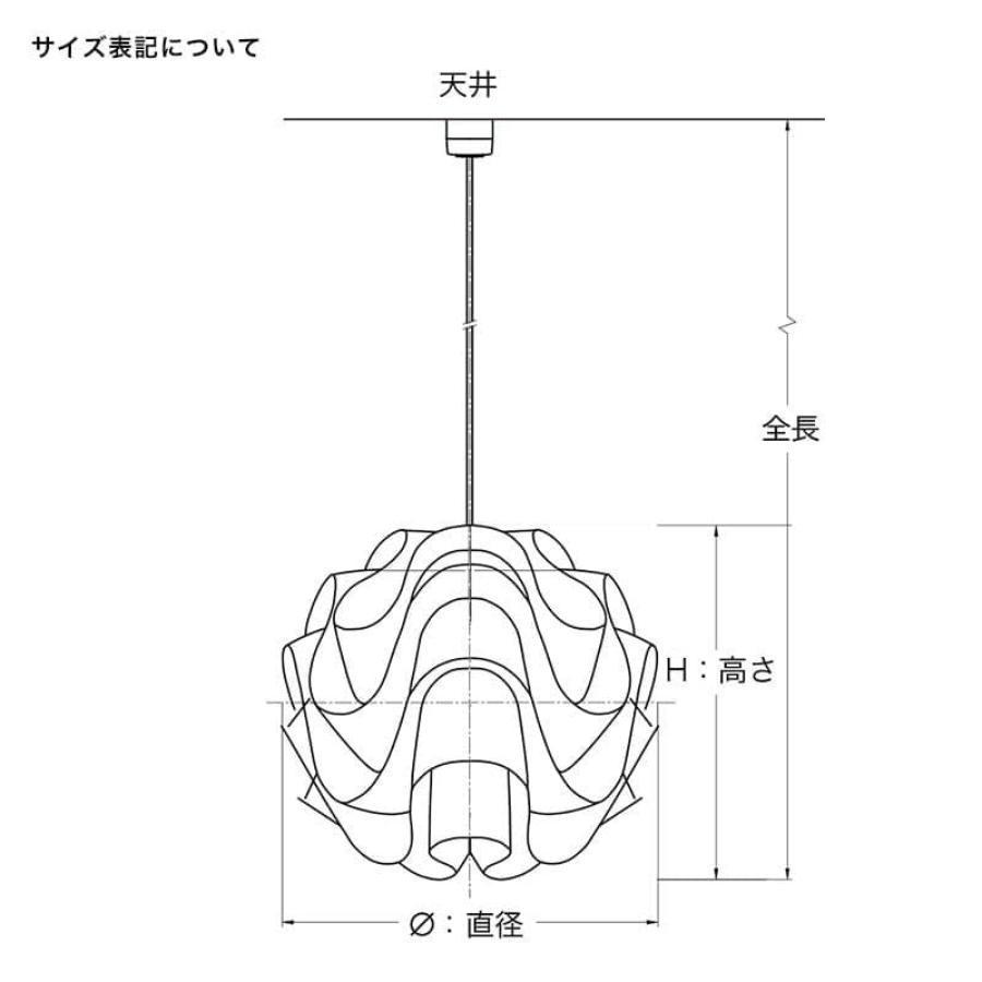 コードの高さ、シェードの高さを足した長さが全長になります。