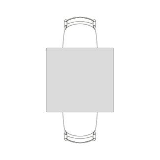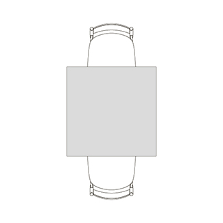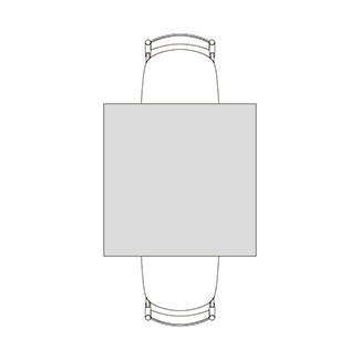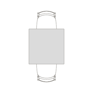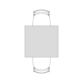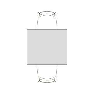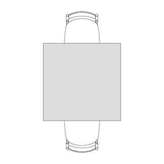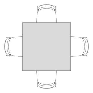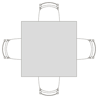 円柱状の脚が4つ角に配置された、Rレッグタイプ。シンプルで脚間が広く、使いやすいデザインです。スクエアテーブルはRレッグのみ指定できます。