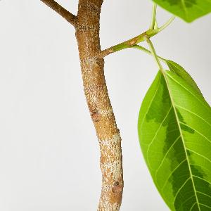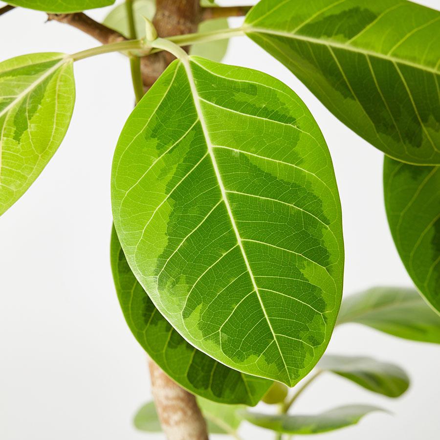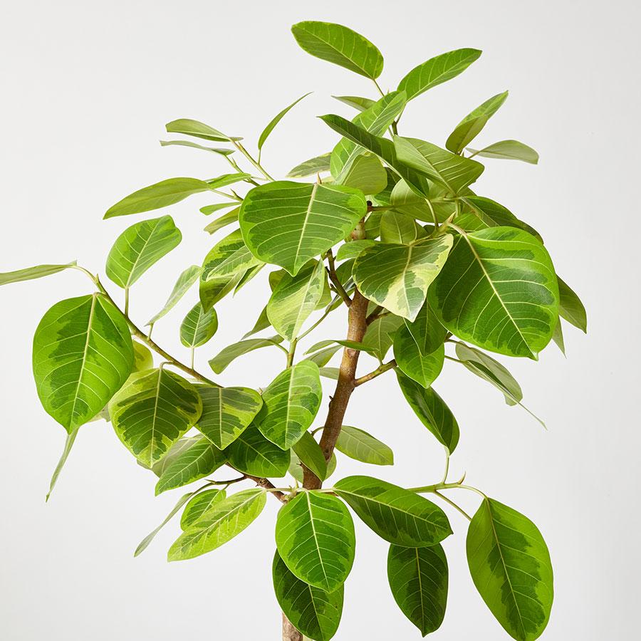 ゴムの木の仲間である「フィカス・アルテシマ」は、ラテン語で「最も背が高い」という意味を持つ、生命力溢れる観葉植物です。 特徴は、何と言ってもその美しい葉色。鮮やかなイエローグリーンに緑の斑(ふ)が入るコントラストは、置くだけでお部屋全体を明るく開放的な印象に変えてくれます。花言葉は「永遠の幸せ」。新生活のスタートやギフトとしても愛されている植物です。