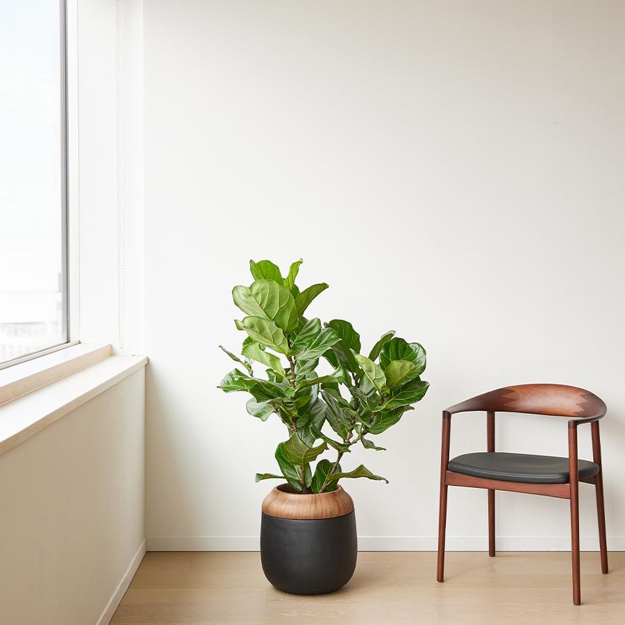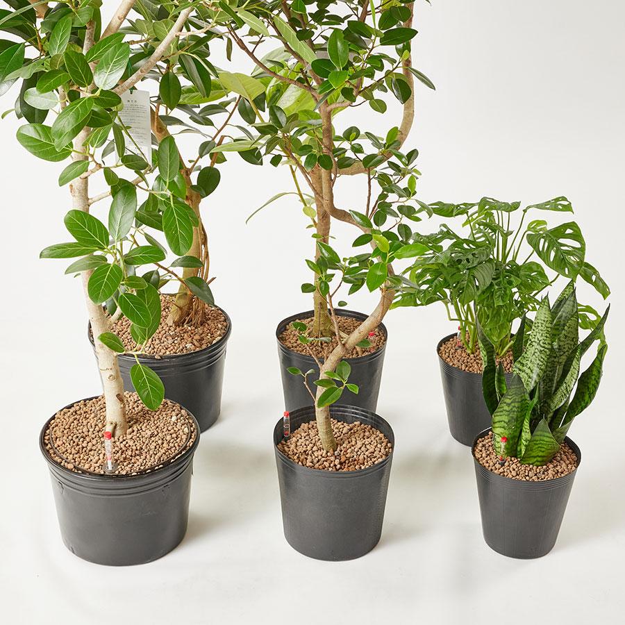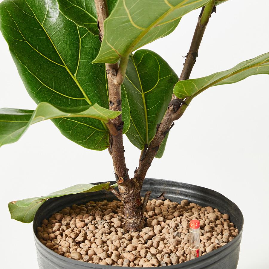 土を使わない「ハイドロカルチャー」仕様でお届けします。黒のプラスチック鉢(インナーポット)に植え込まれており、そのまま飾っていただくことはもちろん、別売りの鉢カバーやスタンドと組み合わせて、インテリアとのコーディネートをお楽しみいただけます。