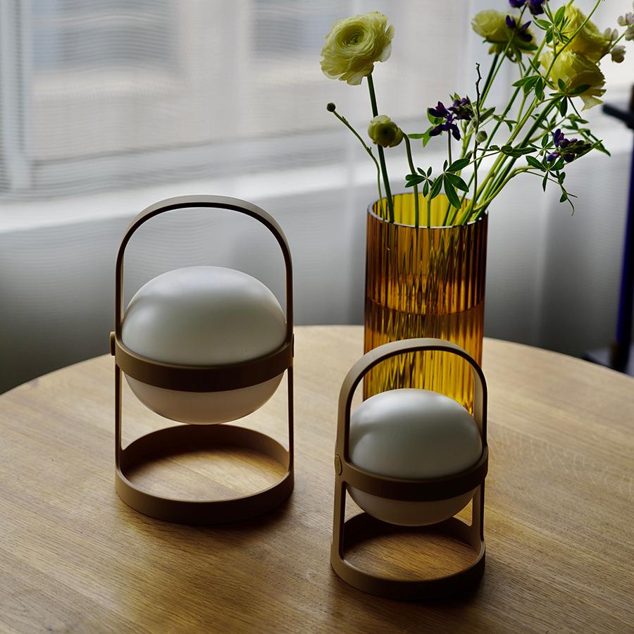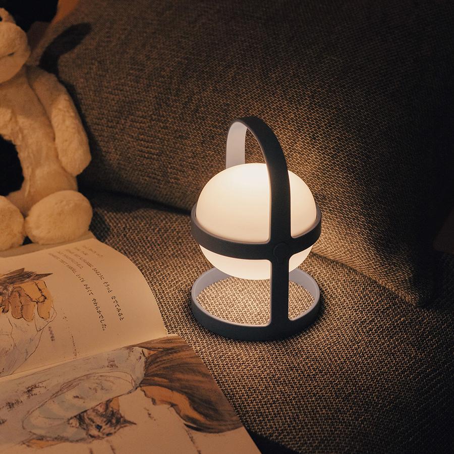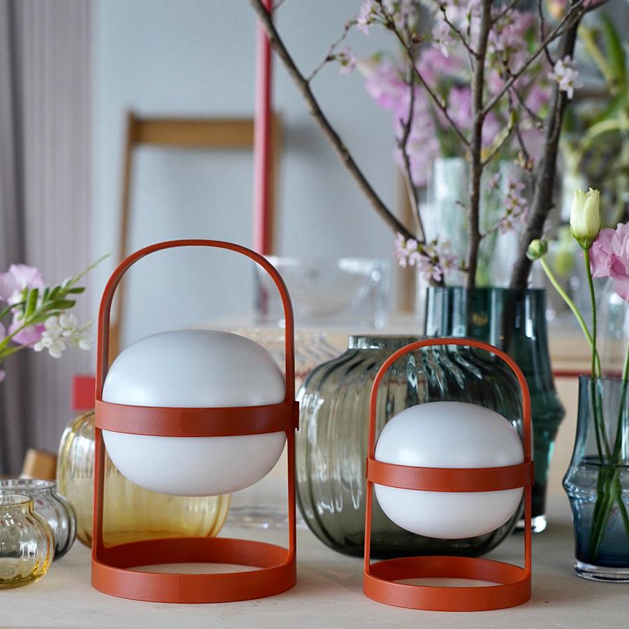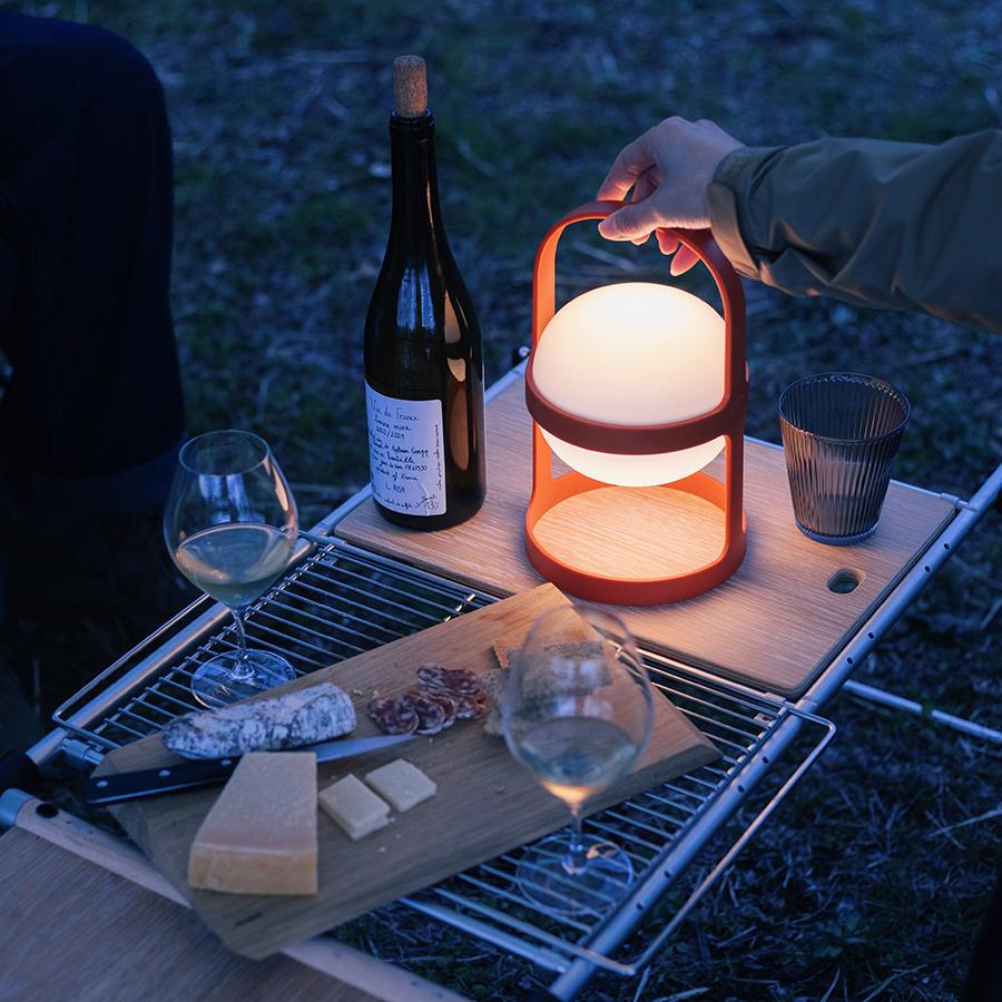 屋内の様々なシチュエーション(例えば、リビング、玄関、寝室や子供部屋)で、陽が落ちると共にその存在感を発揮します。また、テラスやお庭、そして週末のキャンプまで、屋外でも十分に活躍できる画期的なポータブルランプです。