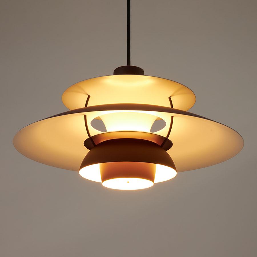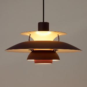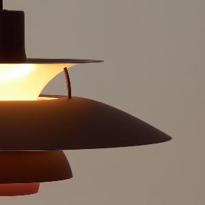 PH 5は、グレア(眩しさ)をまったく外に出さず、大部分の光を下方に集め、同時にランプ自体も自らの光で照らす機能美を備えたペンダントライトです。絶えず白熱電球の形状やサイズを変える電球メーカーへの挑戦として、ポール・ヘニングセンが1958年にPH 5を開発しました。ペンダントのメインシェードのサイズ(直径50cm)にちなんで命名されています。そのデザインは、大部分の光を下方に向ける3枚シェードの光の反射原理にもとづいています。