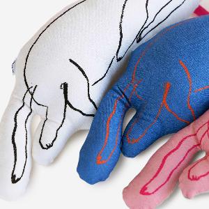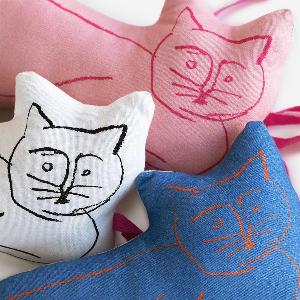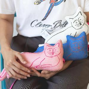 イラストレーターの塩川いづみさんによる、オルネコのブランドキャラクターを立体にしたクッショントイ。