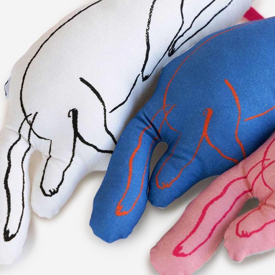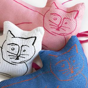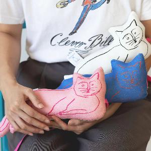 イラストレーターの塩川いづみさんによる、オルネコのブランドキャラクターを立体にしたクッショントイ。