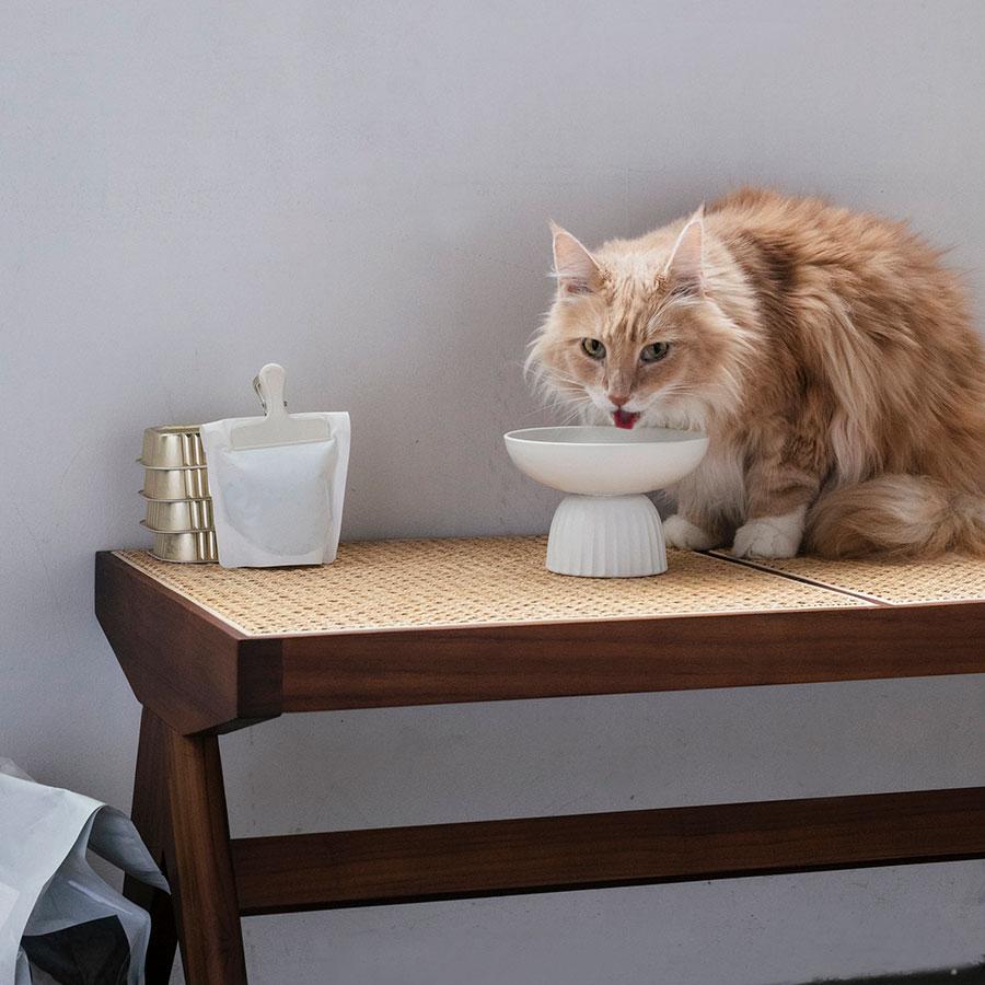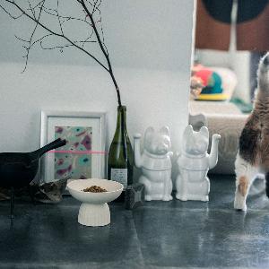 短頭種の猫にも食べやすく設計されたヴィンテージモダンなデザインの器。