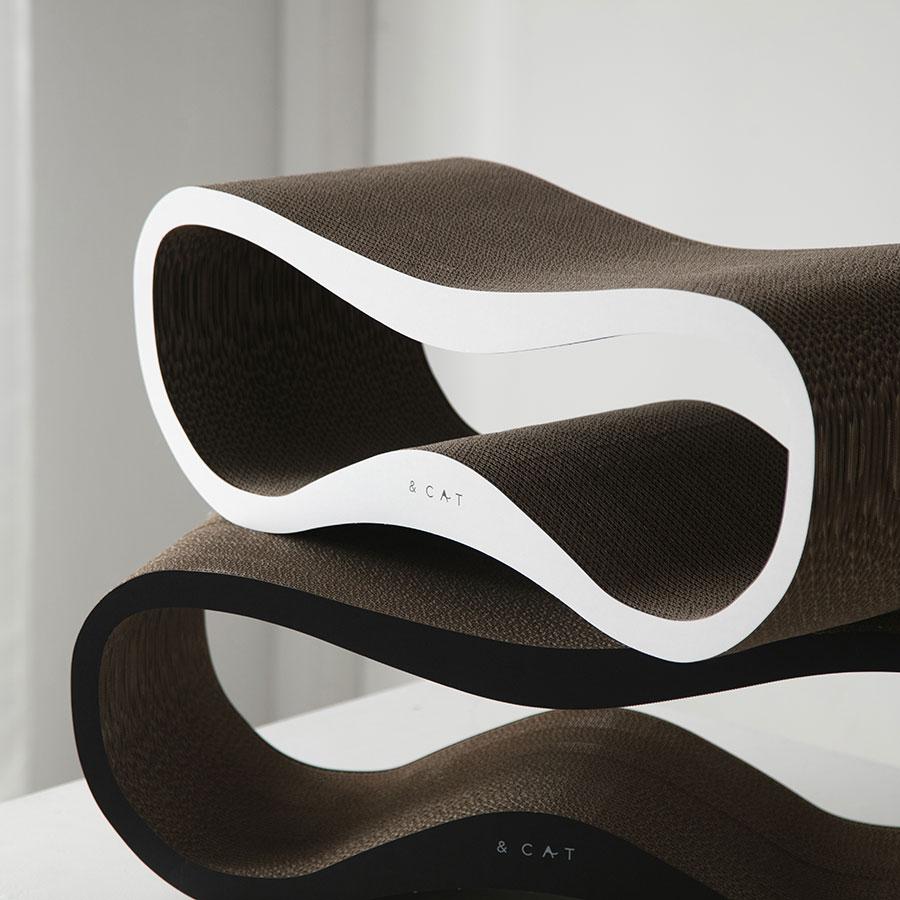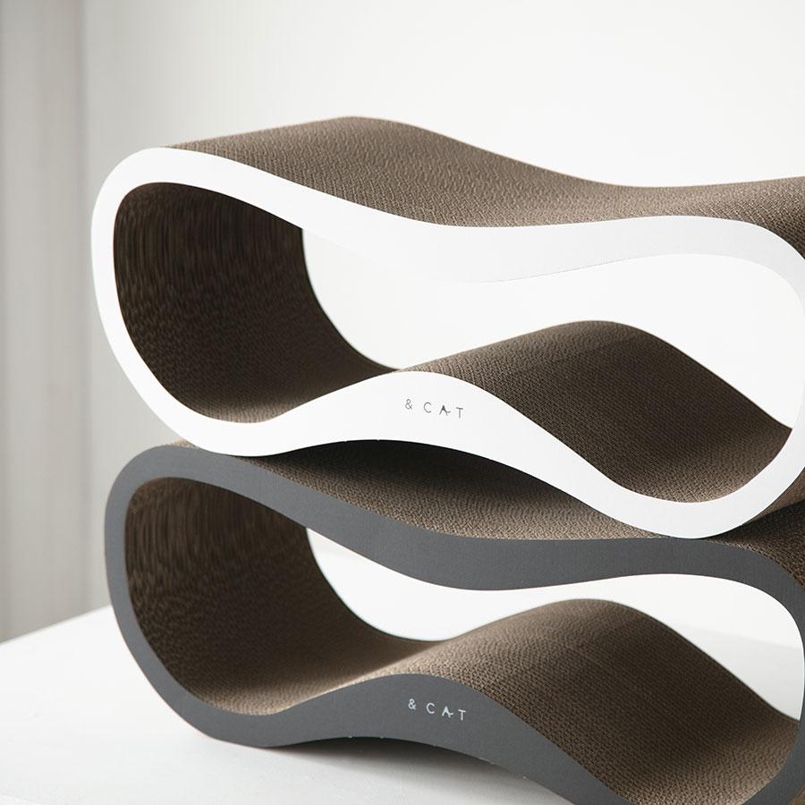 お部屋に置いた時にどうしても浮いてしまいがちな爪とぎですが、インテリアに馴染んで猫のお気に入りのラウンジとしてもお使いいただけるよう&CATの爪とぎは形にもこだわり、オブジェとしても様になるスリムでスタイリッシュなデザインを採用しました。