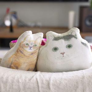 自由気ままで愛くるしい!adoさんが描く、ネコクッション。