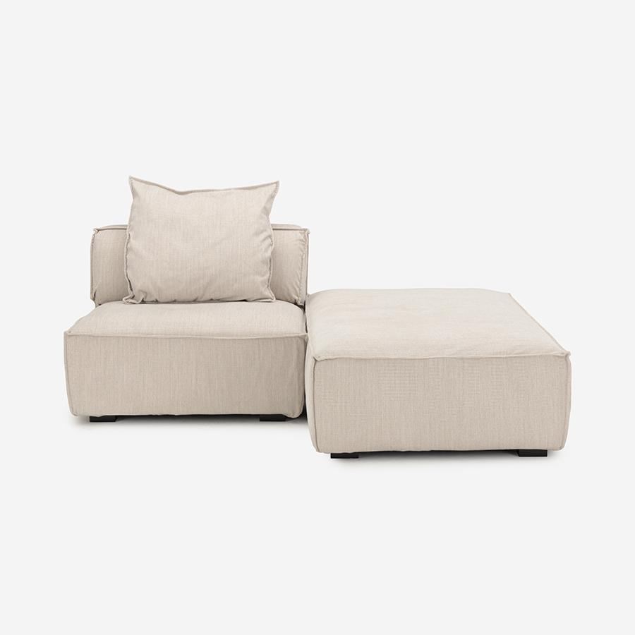 1人掛けにオットマンを組み合わせ、脚を伸ばして、よりリラックスできるスタイルに。オットマンは単体でも使いやすく、来客時には1人掛けから離して、スツールとしてもお使いいただけます。