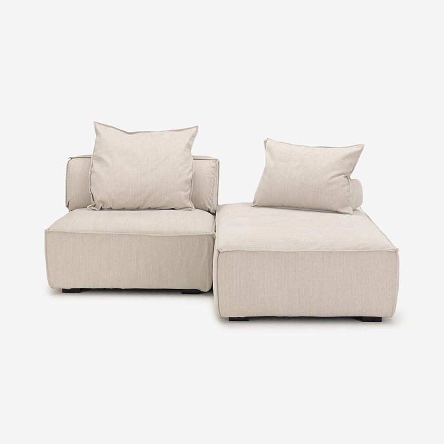 1S ソファとビッグオットマンのセットです。ビッグオットマンをソファに対して左右どちら側にも、縦向きでも横向きでも合わせることができます。