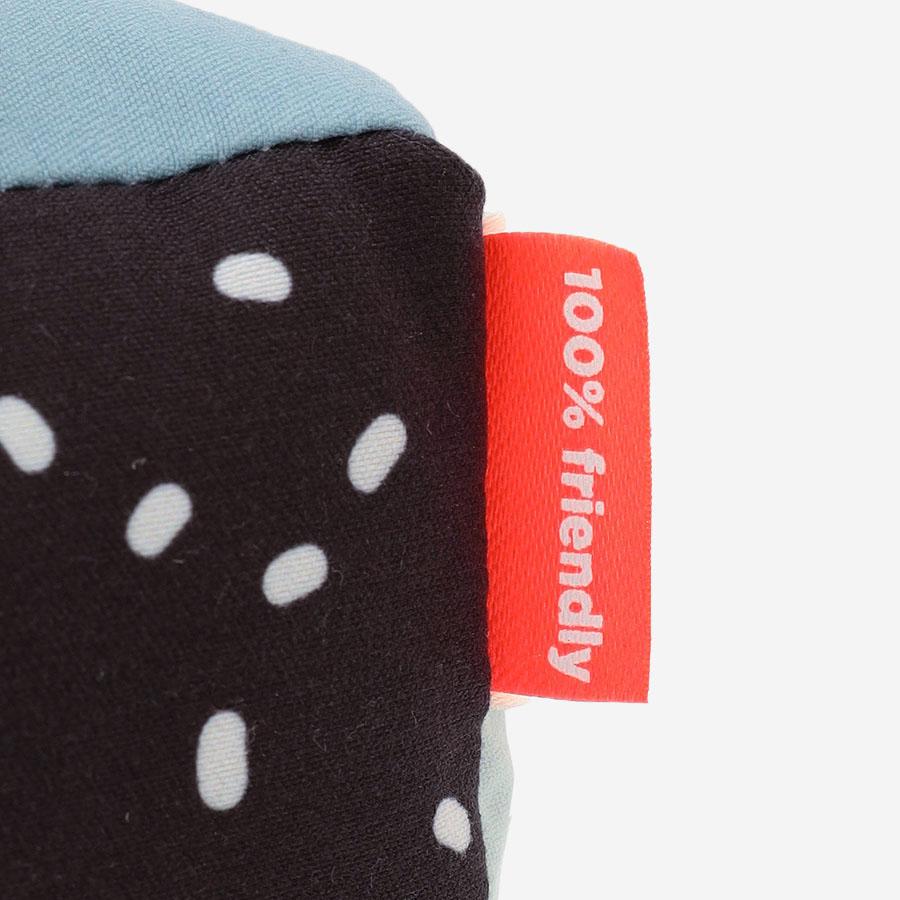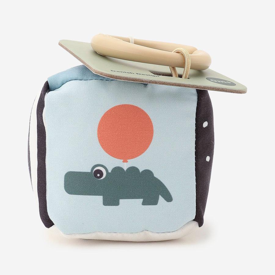 ふわふわとした触り心地が気持ちよいボックス型のソフト玩具。