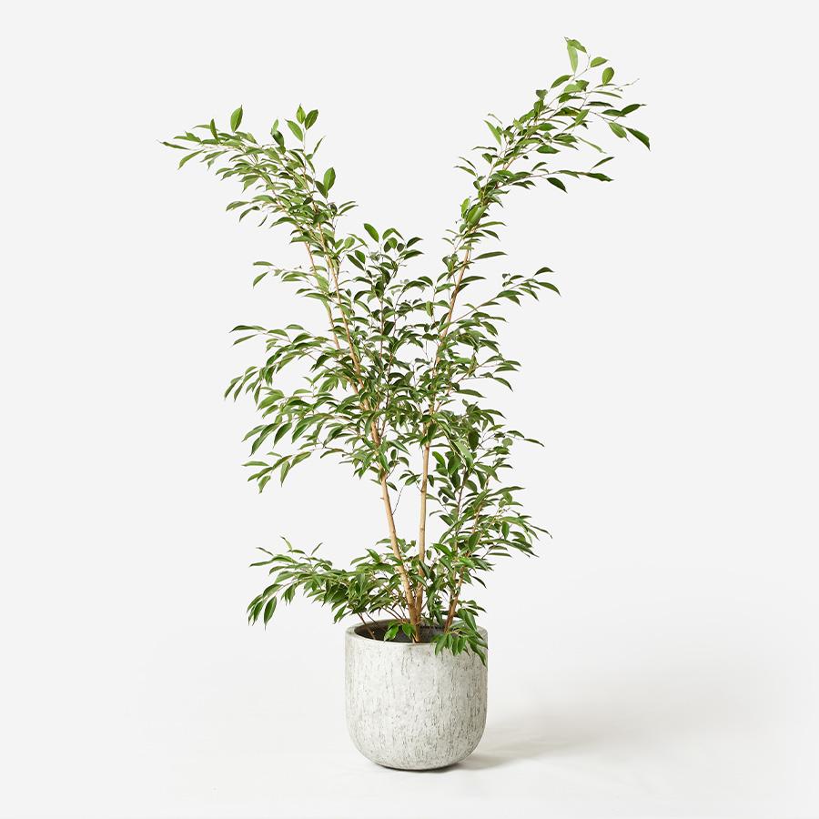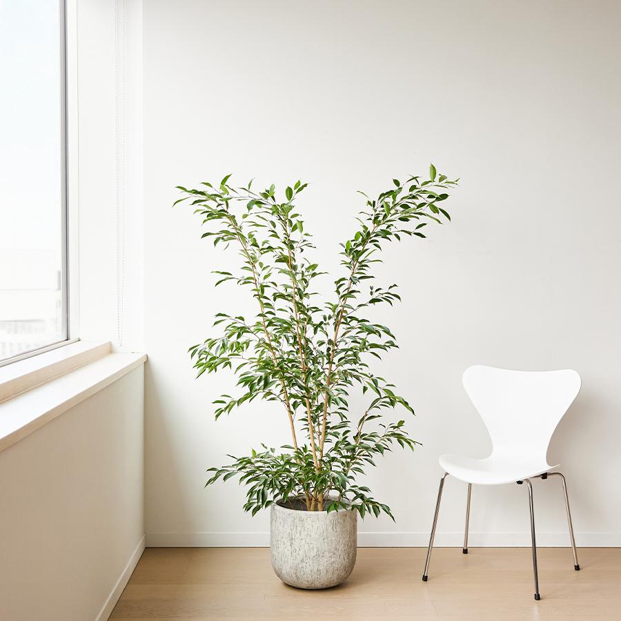小さな葉が織りなす繊細な緑と、優雅に曲線を描く樹形が魅力の「ベンジャミンヌダボサ」