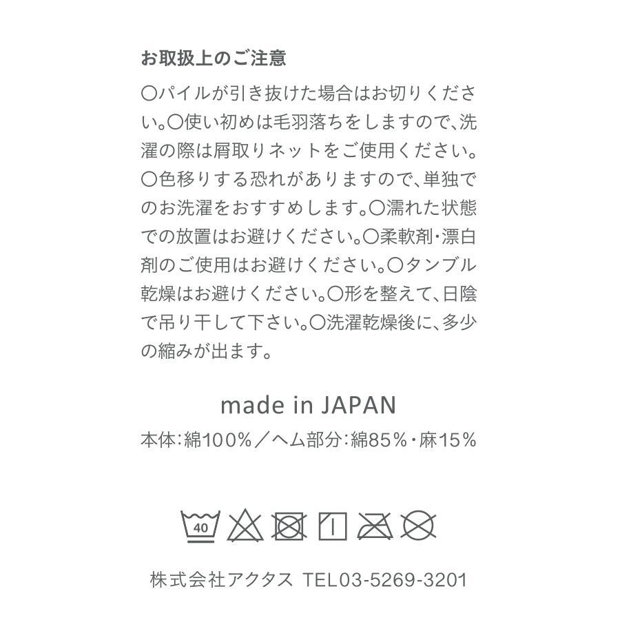 パイル:綿100%、ヘム部分:綿85%、麻15%