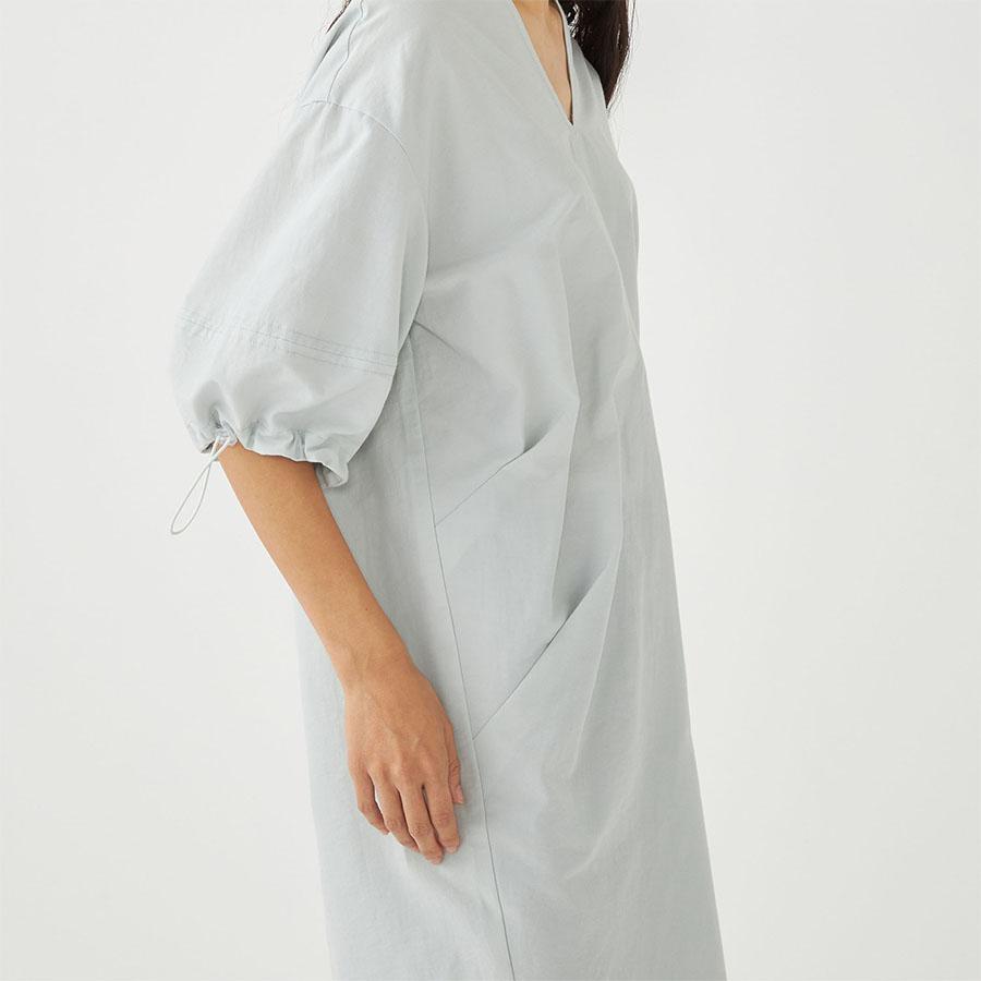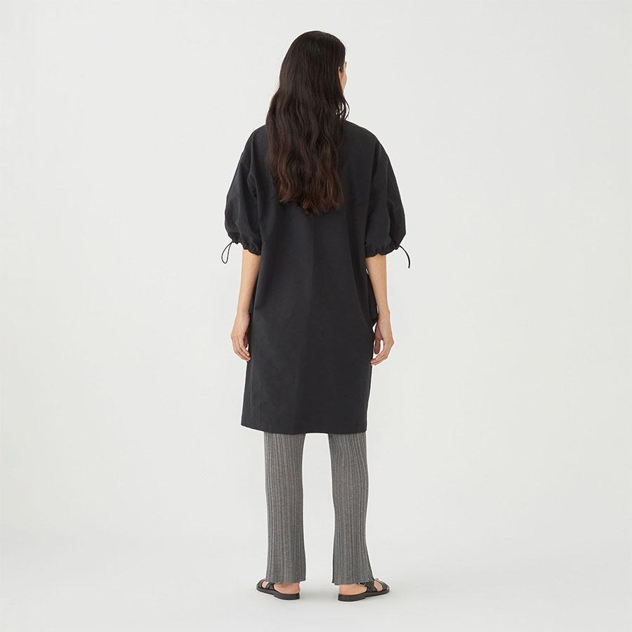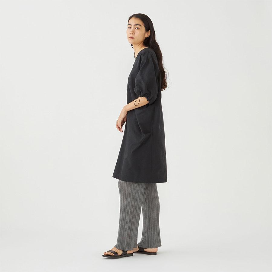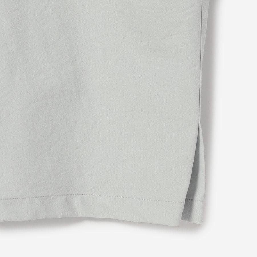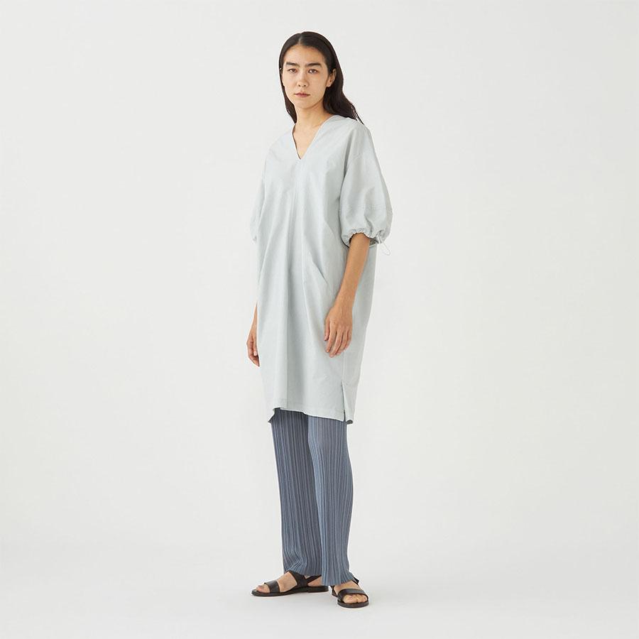 コットンの軽やかさとナイロンのシャリっとしたドライな質感が特徴的な生地を使用し、サイドにタックを入れ立体的なシルエットに仕立てました。