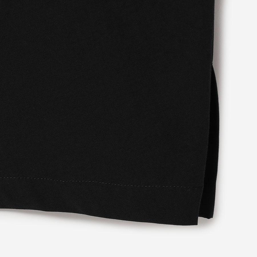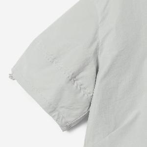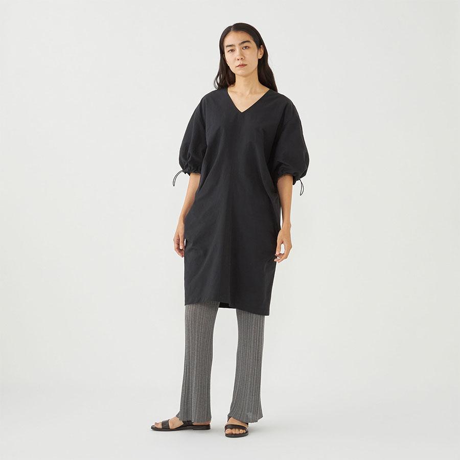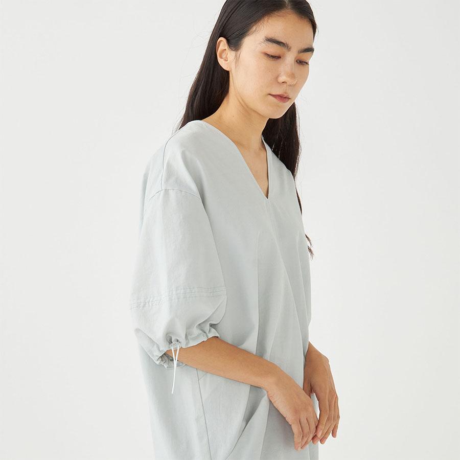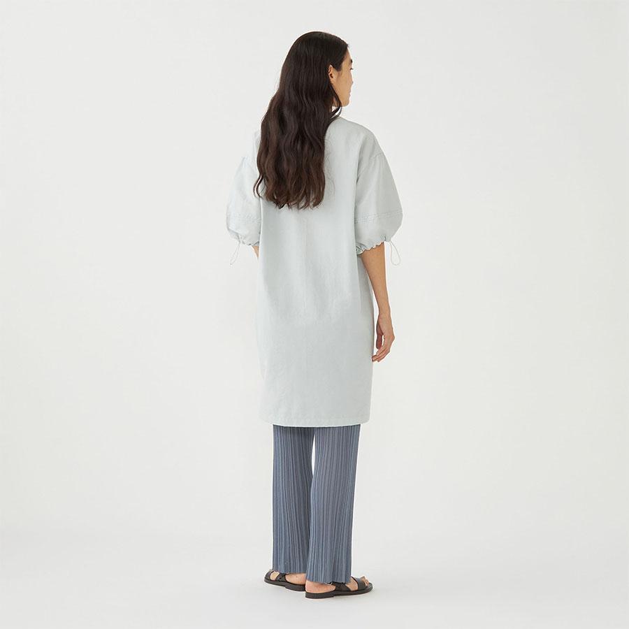 コットンの軽やかさとナイロンのシャリっとしたドライな質感が特徴的な生地を使用し、サイドにタックを入れ立体的なシルエットに仕立てました。