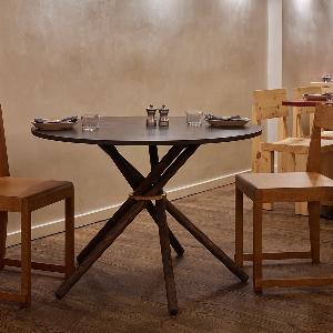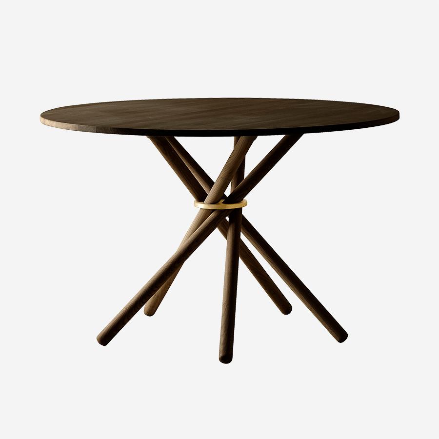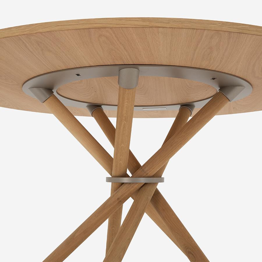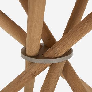 ダイナミックに交差する5本の無垢材の脚は、力強いだけでなく洗練された印象のデザインです。