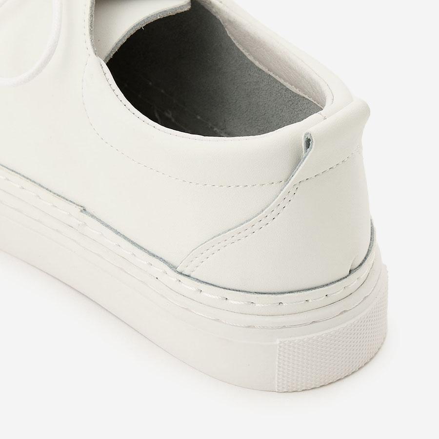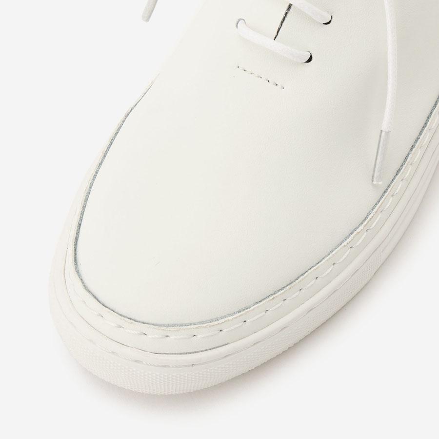 マットな質感のカウレザーを使用したeaukオリジナルのレースアップスニーカー。