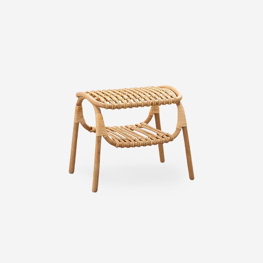 MACHIYA (マチヤ) スツールは、気鋭の日本人デザイナー・倉本仁が、日本の原風景とも言える「町家」に敬意を表してデザインした一脚です。町家の特徴である「格子」を思わせる繊細なラインと、限られた空間を有効活用する収納機能を、ラタンという素材で現代的に再構築しました。