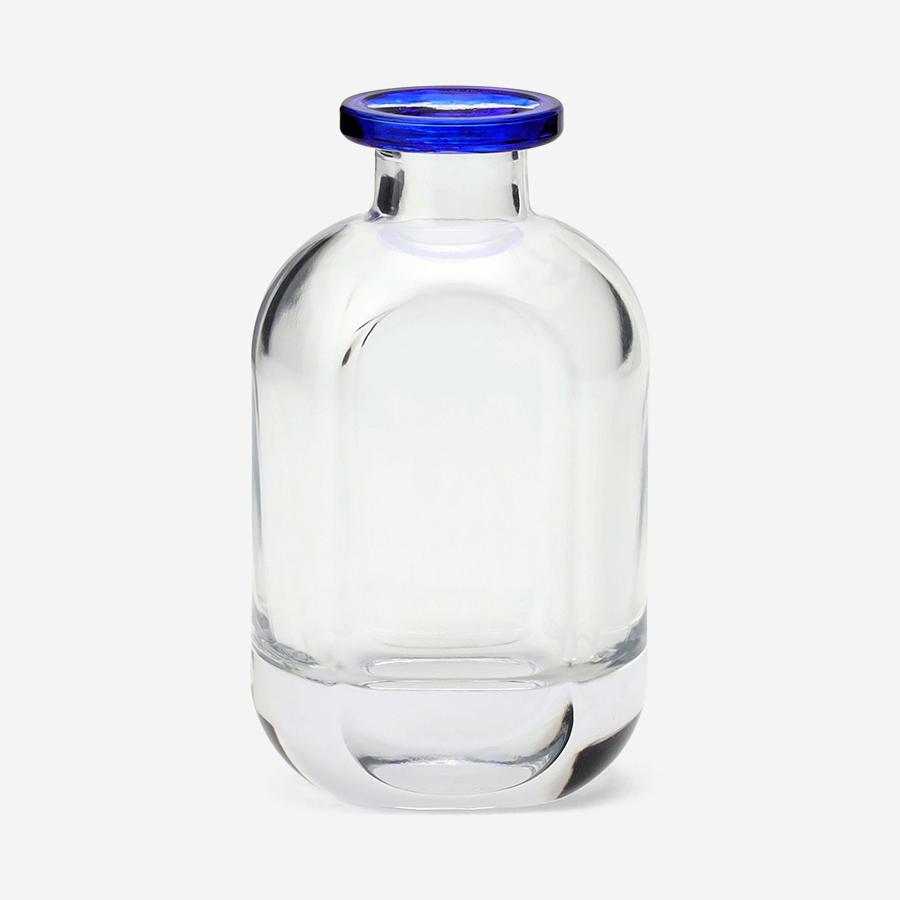 クリアなガラスの縁に、美しいカラーラインを効かせたアクタスオリジナルのフラワーベース。