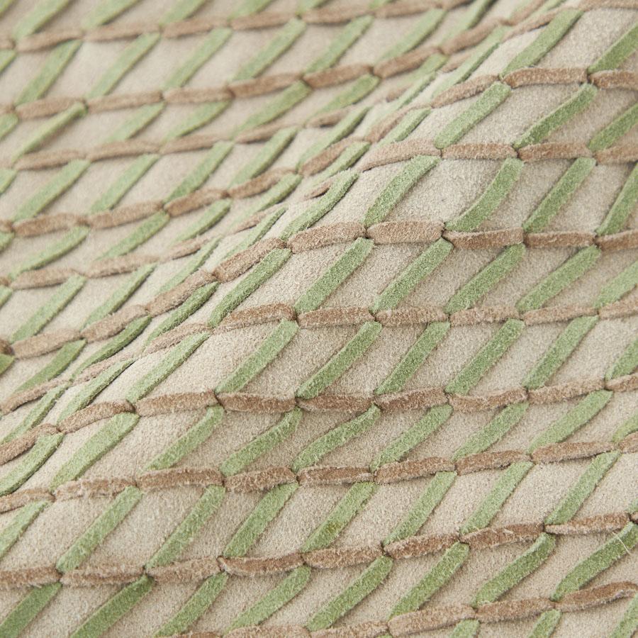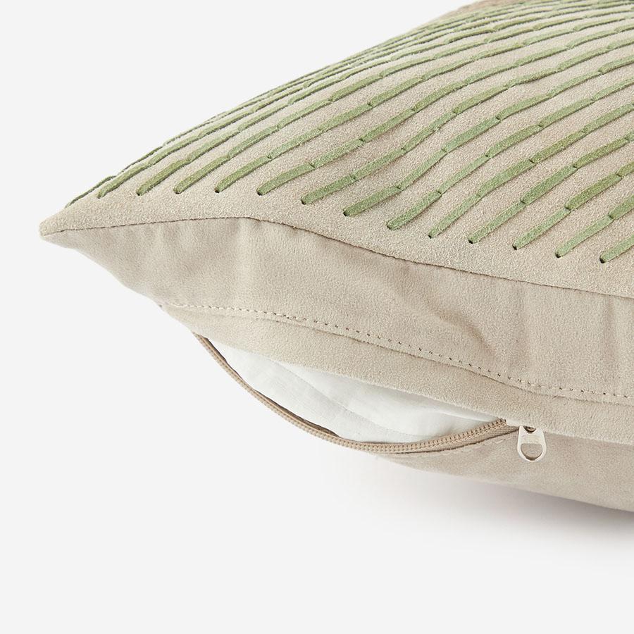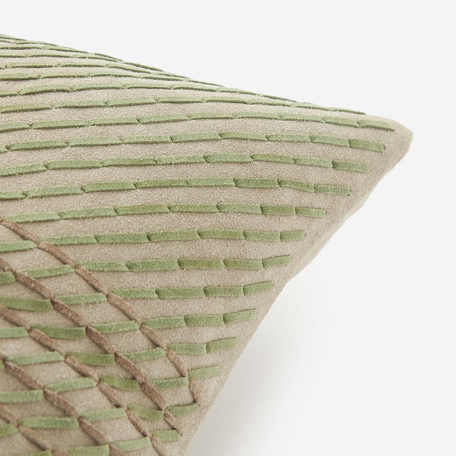 大胆なデザインと多彩なテクニックを取り入れた、スエードタッチのクッションカバーです。