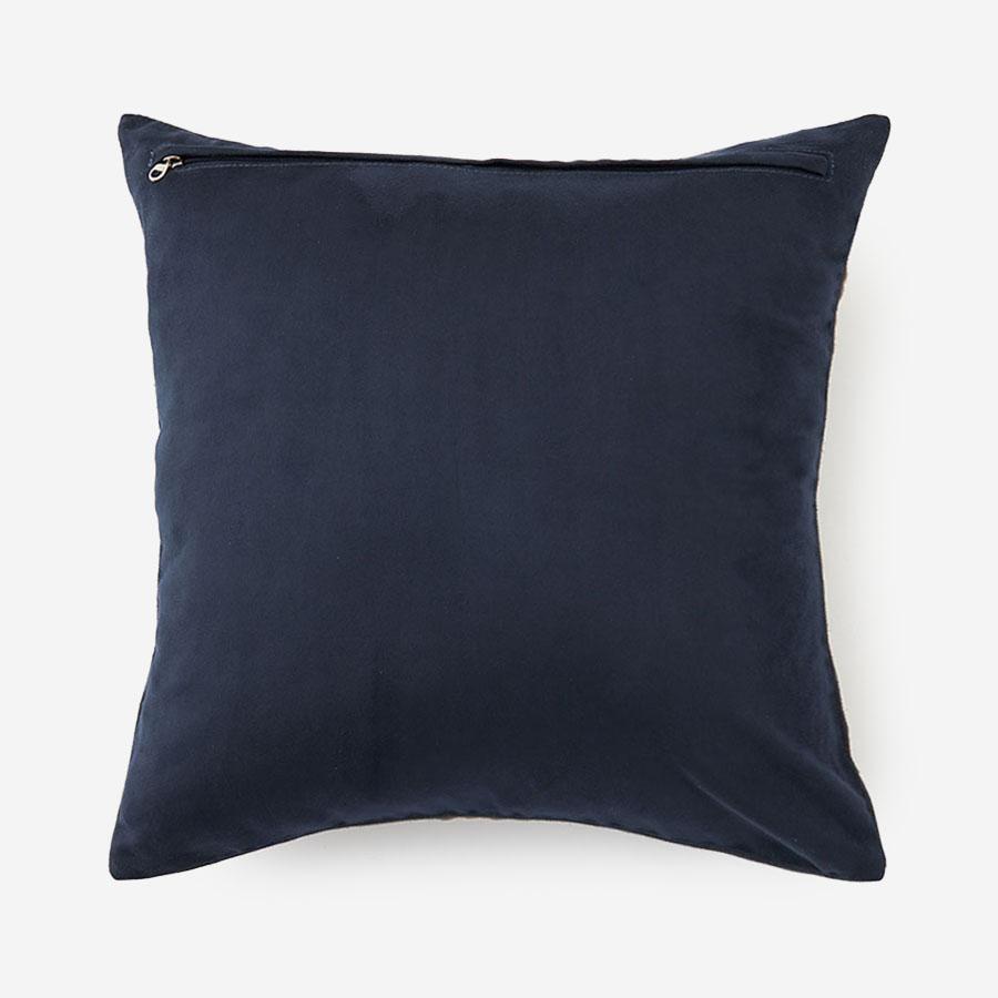 大胆なデザインと多彩なテクニックを取り入れた、スエードタッチのクッションカバーです。