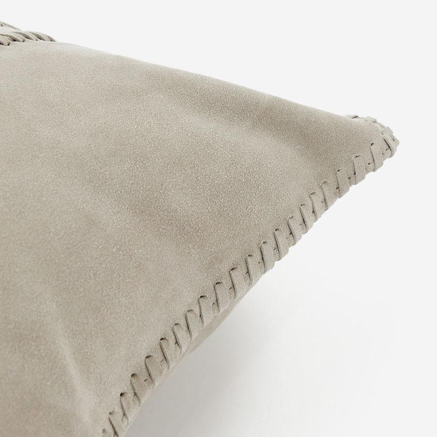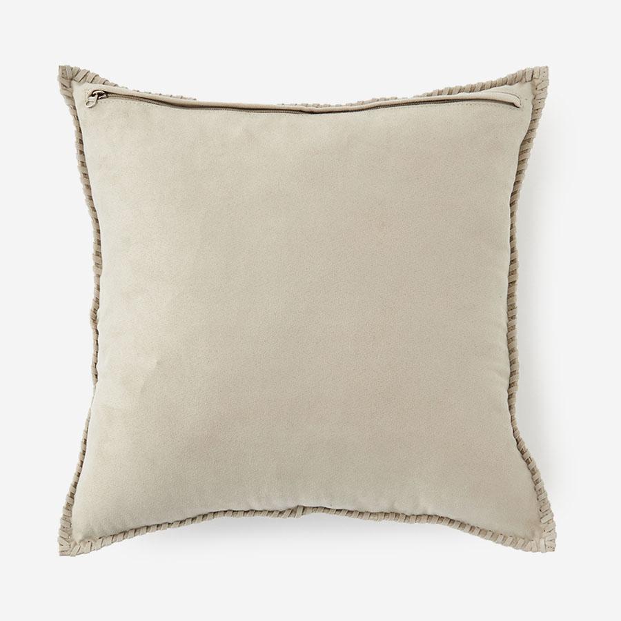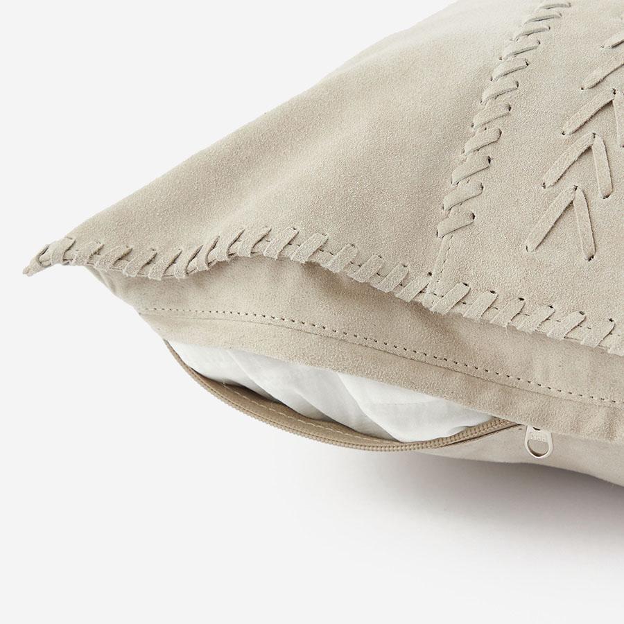 大胆なデザインと多彩なテクニックを取り入れた、スエードタッチのクッションカバーです。