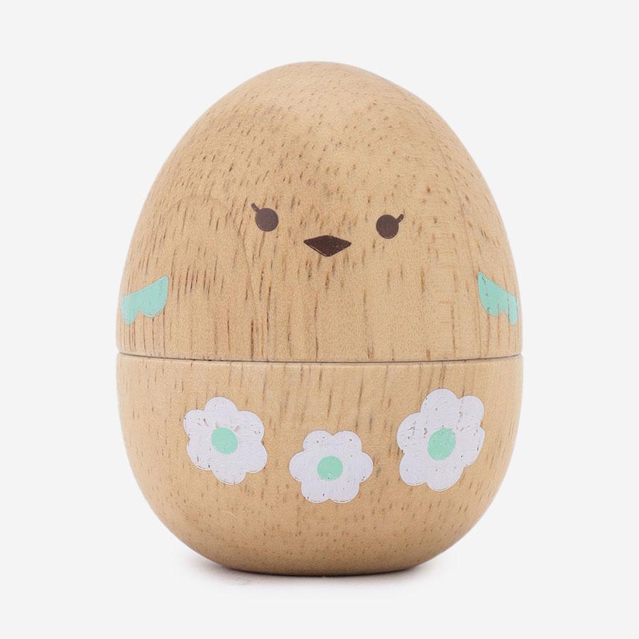 鳥の親子のような、コロンと愛らしいフォルムのたまご型マラカス。