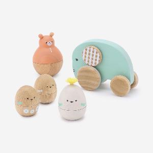五感にやさしい木や布の天然素材にこだわり、遊びを通じて達成感を味わえるよう工夫したおもちゃの数々を幼児教室と共同開発し自社で企画・製造しています。