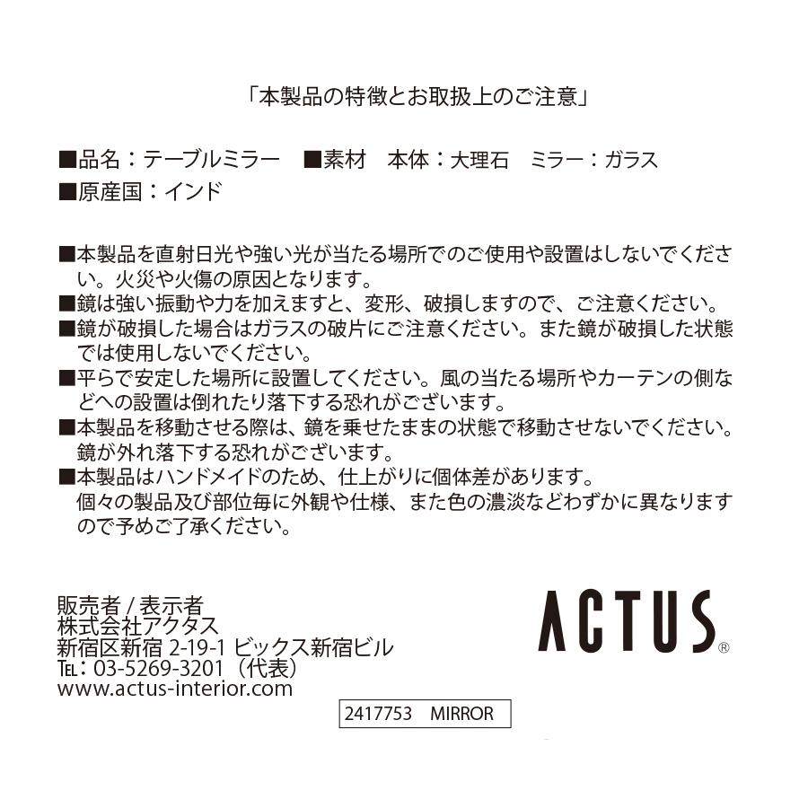 TOP > 雑貨 > ミラー > TABLE MIRROR マーブル
