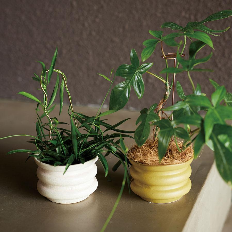 上品なステンレスゴールドの輝きが、植物の緑をより一層引き立て、空間にリュクスな印象を与えます。