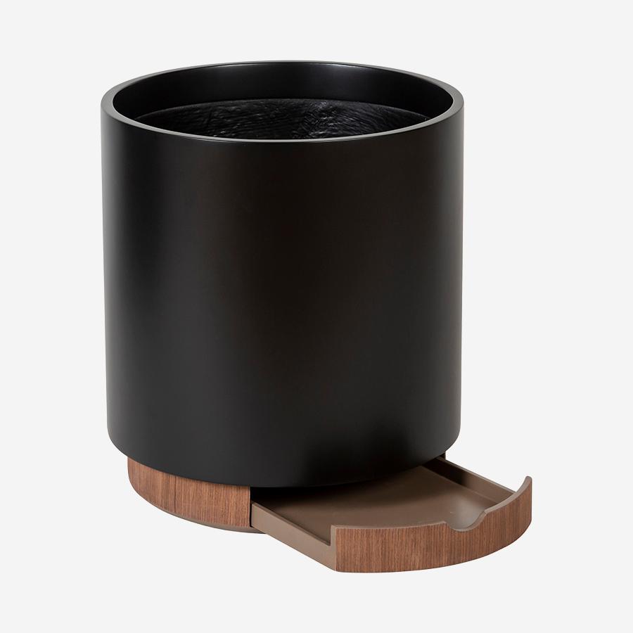 温かみのあるウッド調のベースに、引き出し式の受け皿を内蔵したことで、重い鉢を持ち上げることなく、溜まった水の確認や排水がスマートに行えるため、大切な植物の根腐れリスクを軽減します。