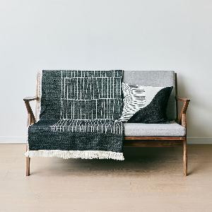 ジャガード織りで表現されたモダンなデザインのブランケット。