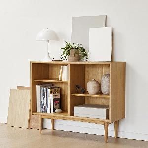 シンプルながら細部にこだわりが感じられるブックシェルフは奥行33.5cmとコンパクトなサイズ感のためお部屋に圧迫感なく置いていただくことができます。