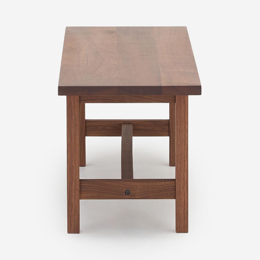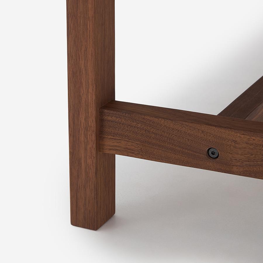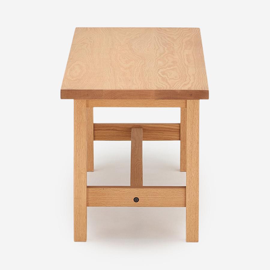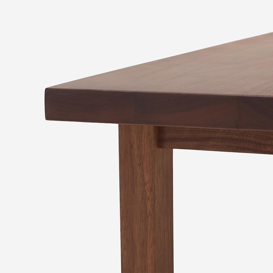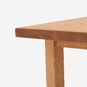 作家のアトリエのような、静かで落ち着いた空気が流れるダイニング。凛とした佇まいが魅力です。天板から脚の先まで贅沢に使用した無垢材にマットな塗装を施すことで、木目がもつ自然な表情を最大限に引き出しました。