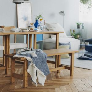 ベンチを組み合わせることでダイニングの空間に余白が生まれ、よりすっきりと洗練された印象を演出します。