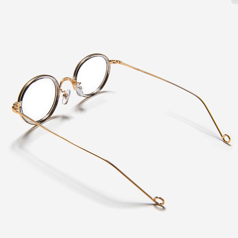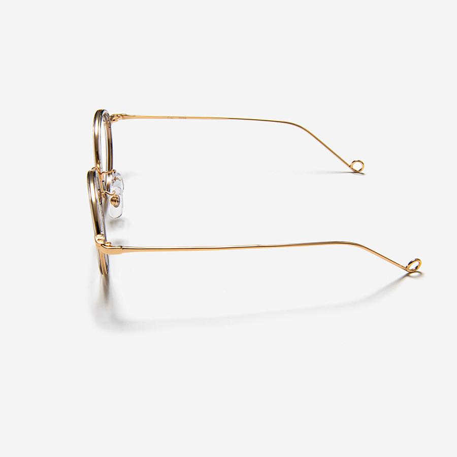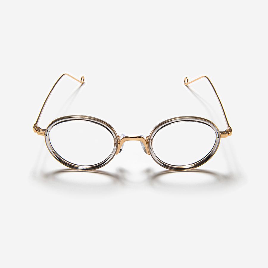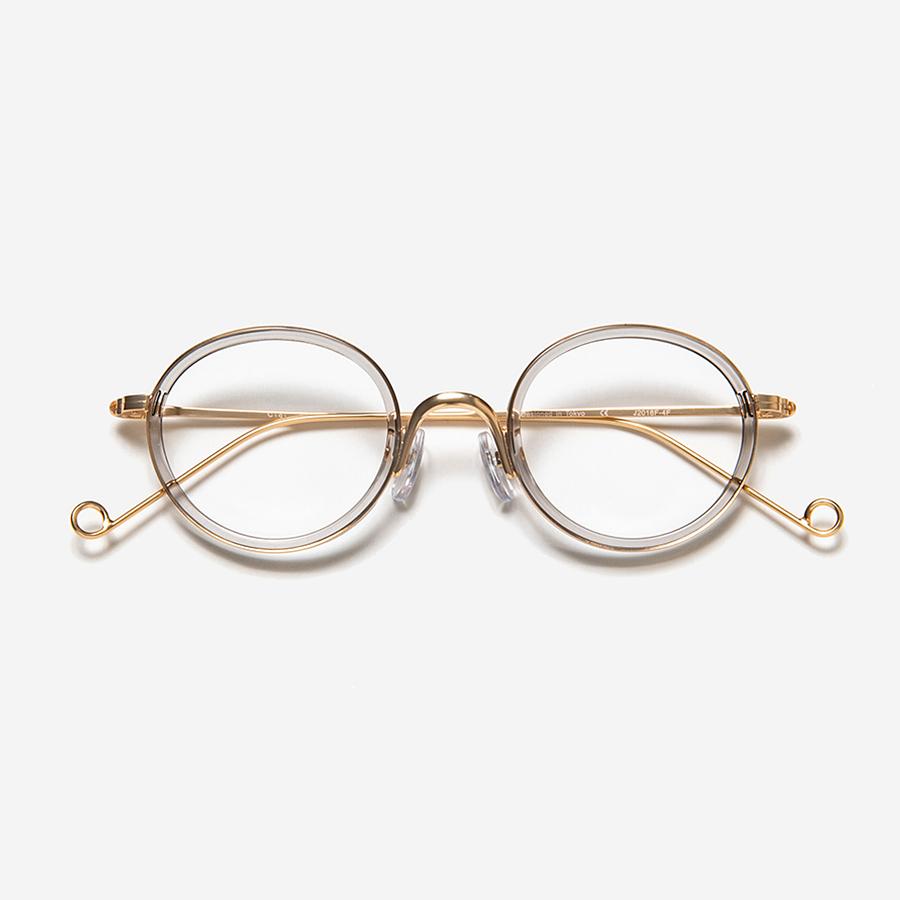 丸みを帯びた優しげなフロントと、華奢なテンプルエンドが特徴的。