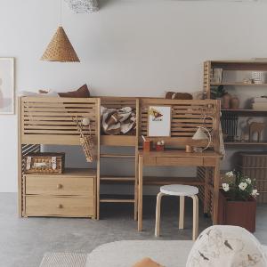 無垢のオーク材を使ったラダーで囲まれた小さな空間。
