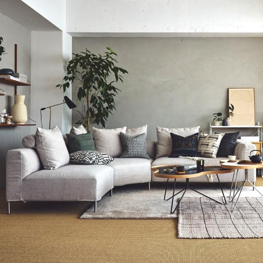• モジュール同士を連結することも、単体で設置することも可能なため、ライフスタイルの変化に合わせて配置を自由に変更できます。[ビッグコーナーソファ、アーム ソファのセット]